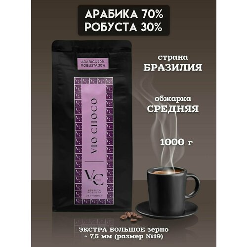 Кофе Арабика 70%, Робуста 30% Бразилия в зернах натуральный жареный, 1000 грамм. Экстра большое зерно (№19)