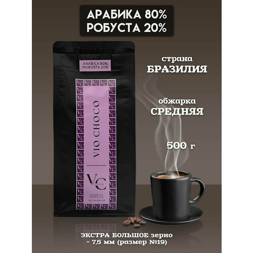 Кофе Арабика 80%, Робуста 20% Бразилия в зернах натуральный жареный, 500 грамм. Экстра большое зерно (№19)