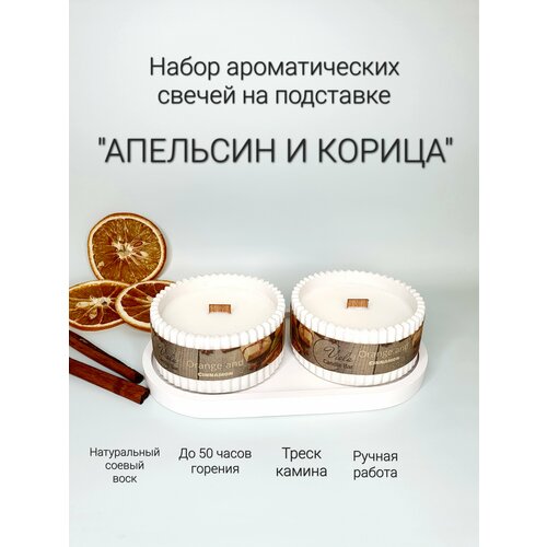 Подарочный набор свечей на подносе "апельсин И корица"