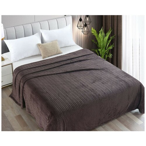 Плед на диван, покрывало велсофт 180х205, Виотекс, 2-х спальный, шоколадный