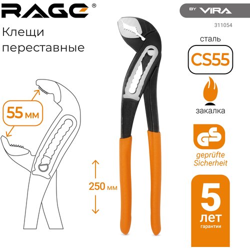 Клещи переставные с широким зевом 250мм VIRA RAGE
