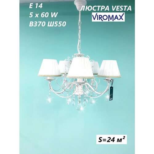 Светильник Люстра VESTA кованая на 5 плафонов, с подвесками, 1 шт.
