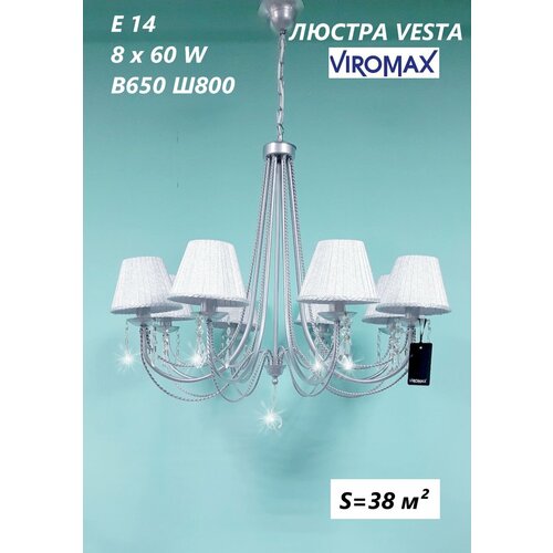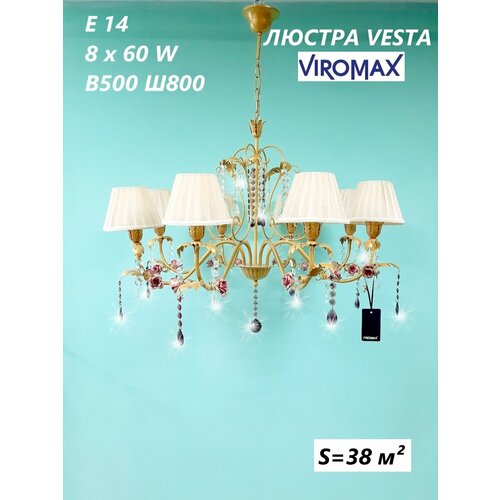 Светильник Люстра VESTA кованая на 8 плафонов с подвесками,1 шт.