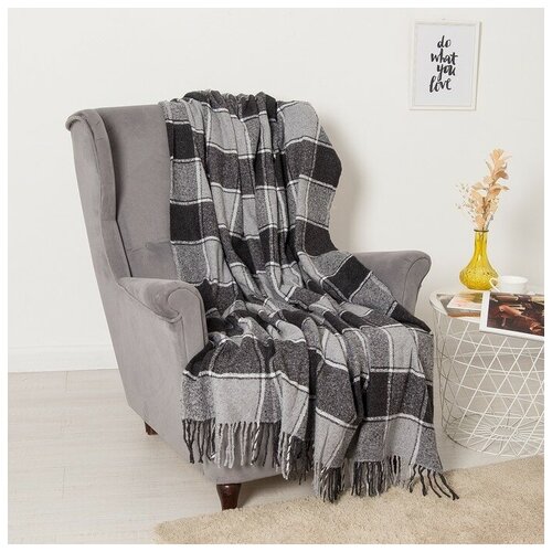 Плед Валенсия 140х200см, Picnic бел/дым/пес/пес 10 хлопок 50%, п/э30%, пан 20% 6833397