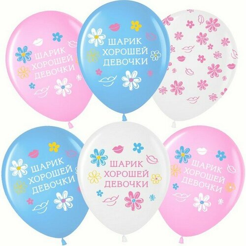 Волна Веселья Шар латексный 12" "Шарик Хорошей Девочки", ассорти, пастель, 5 ст, набор 25 шт. Микс
