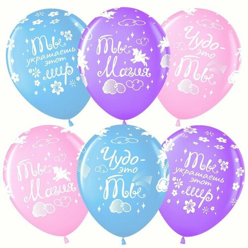 Волна Веселья Шар латексный 12" «Чудо - это ты. Единорожки», пастель, 5 ст, 25 шт, микс