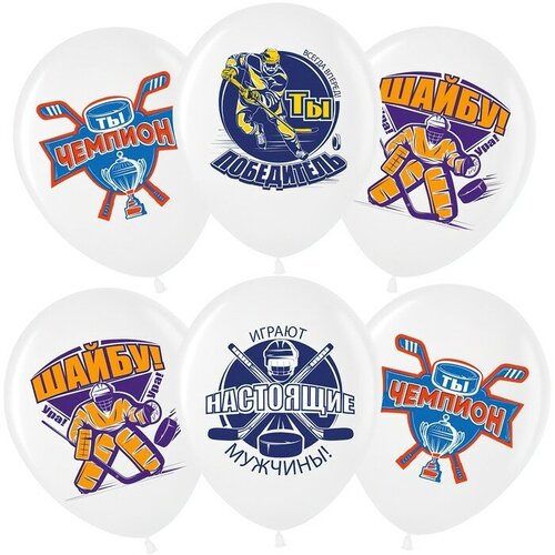 Шар латексный 12" "В хоккей играют настоящие мужчины" белый, пастель, 2ст, набор 25 шт.