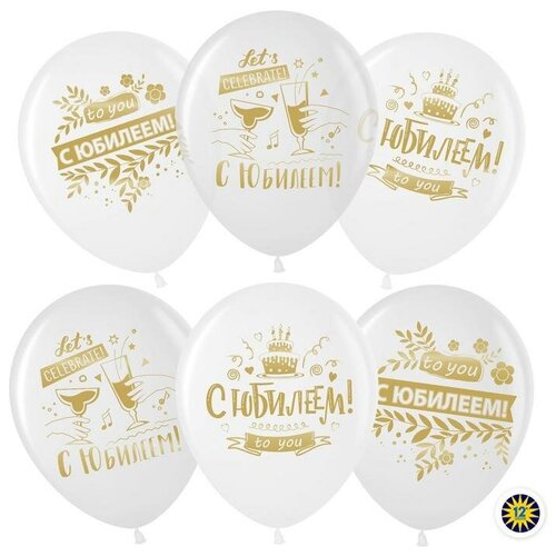 Волна Веселья Шар латексный 12" "С Юбилеем! золотой принт" кристалл, 2 ст, набор 25 шт.