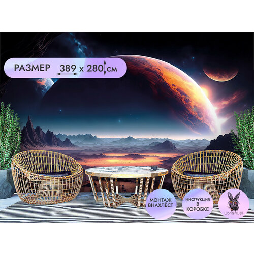 Фотообои флизелиновые WONDERWALL Планета на фоне звезд и галактик 2 389*280см в гостиную, в кухню, в спальню