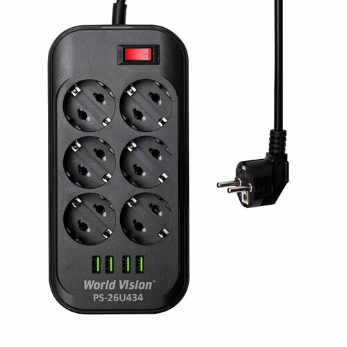 Сетевой фильтр World Vision PS-24U434 4 розетки и 4 USB порта,2м