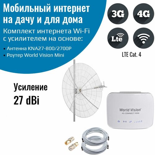 Мобильный интернет на даче, за городом 3G/4G/WI-FI – Комплект роутер World Vision Connect Mini с антенной MIMO 15 дБ