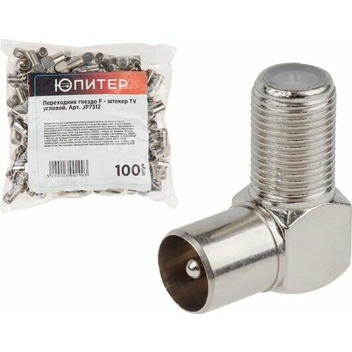 Разъем-переходник гнездо F-штекер TV угловой юпитер 100 штук (JP7312)