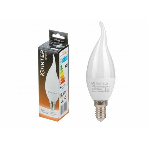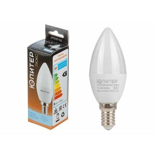 Лампа светодиодная C37 свеча 7,5 Вт 170-240В E14 5000К юпитер люкс (JP5137-52)