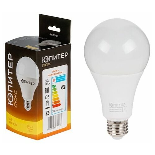 Лампа светодиодная A80 стандарт 18 Вт 170-240В E27 3000K юпитер люкс (JP5160-33)