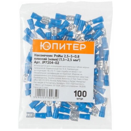 Разъем РпИм 2,5-5-0,8 плоский (мама) (1,5 - 2,5 мм2) (100 шт) Юпитер (JP7204-02) (юпитер)