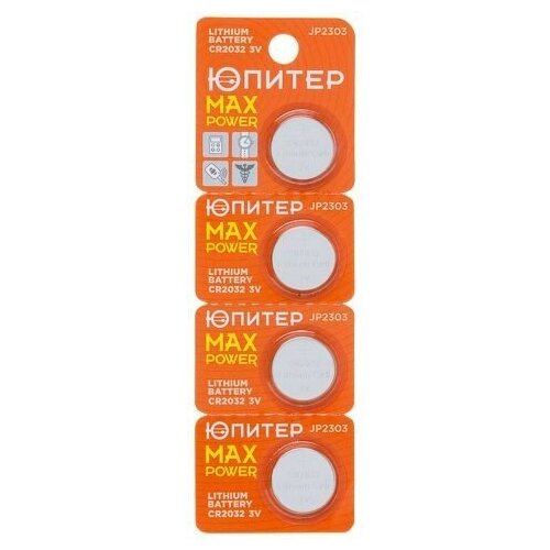 Батарейка CR2032 3V lithium 4шт. Юпитер (блистер с линиями отрыва) (JP2303)