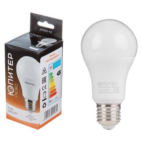 Лампа светодиодная A60 стандарт 15 Вт 170-240В E27 4000К юпитер люкс (JP5160-42)