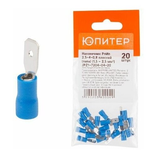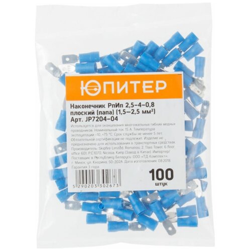 Разъем РпИп 2,5-4-0,8 плоский (папа) (1,5 - 2,5 мм2) (100 шт) Юпитер (JP7204-04) (юпитер)