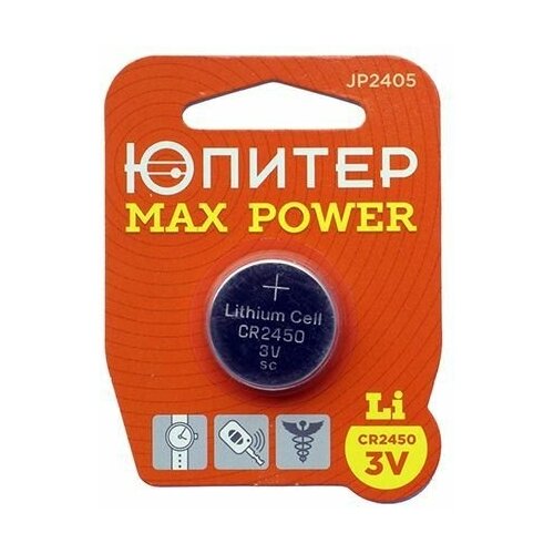 Батарейка CR2450 3V lithium 1шт. Юпитер MAX POWER (JP2405)