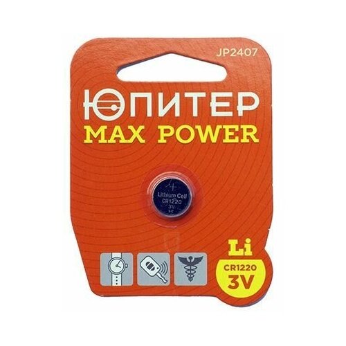 Батарейка CR1220 3V lithium 1шт. Юпитер MAX POWER (JP2407)