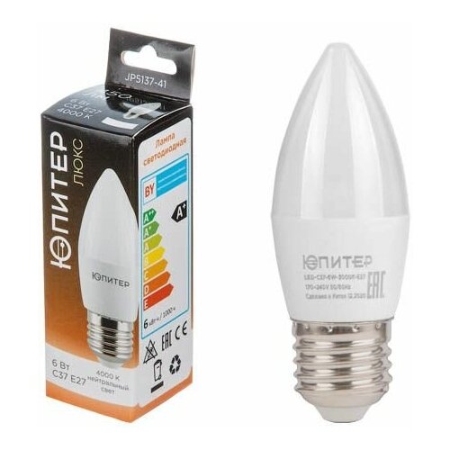 Лампа светодиодная C37 свеча 6 Вт 170-240В E27 4000К юпитер люкс (JP5137-41)