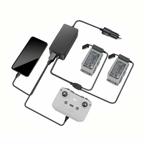 Автомобильное зарядное устройство для 2 аккумуляторов и пульта DJI Mavic 3