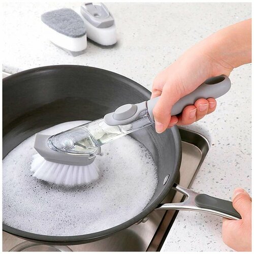Автоматическая щетка для мытья посуды/ Губка для мытья посуды с ручкой/ Щетка с дозатором