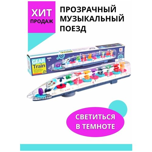 Прозрачный Паровоз с шестеренками светящийся со звуком Gear Train Поезд Интерактивный