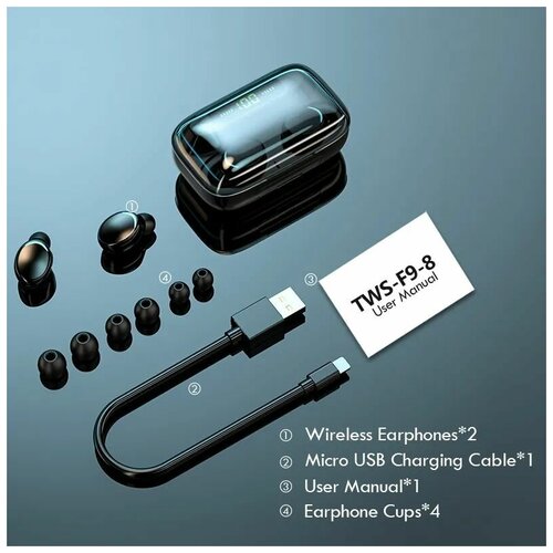 Наушники беспроводные / наушники сенсорные с powerbank / наушники F9
