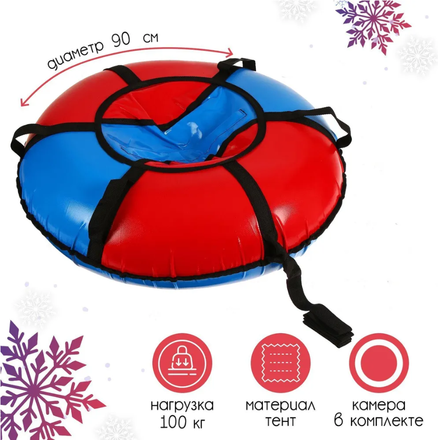 Мягкая детская ватрушка для катания, ZEVS, тюбинг 90 см,камера R13 ZvVix90BLRD