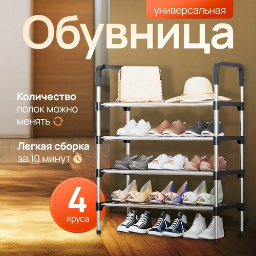 Обувница, полка для обуви, метал, ABS пластик, 4 полки, открытая, 60х30х80 см