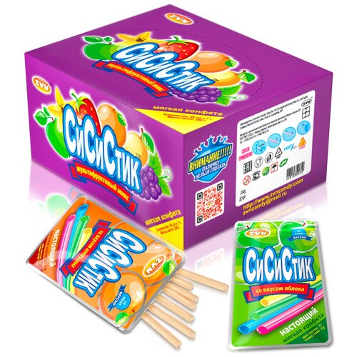 Мягкие конфеты СиСиСтик мультифрукт в соломинках 12 блоков