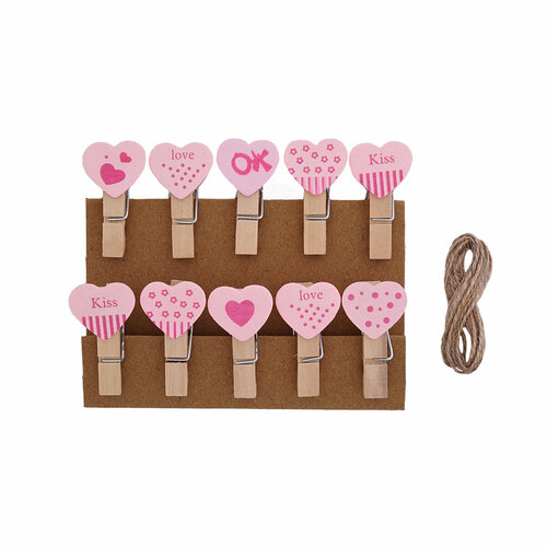 Прищепки декоративные Айрис 2AR23385, Розовые сердечки 3,5 см, 10 шт