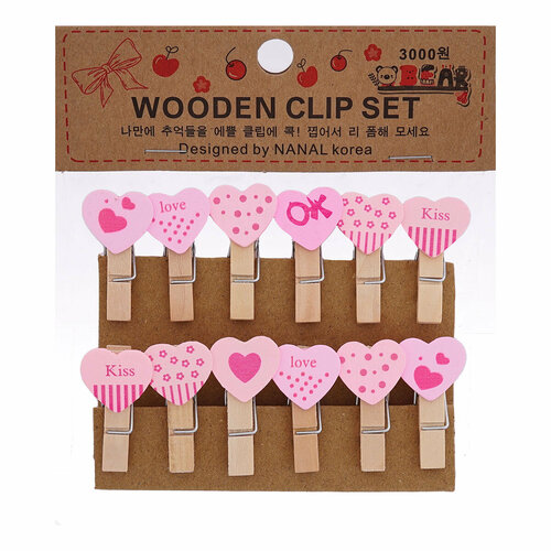 Прищепки декоративные Айрис Сердечки, 3,5 см, 12 шт (упак)