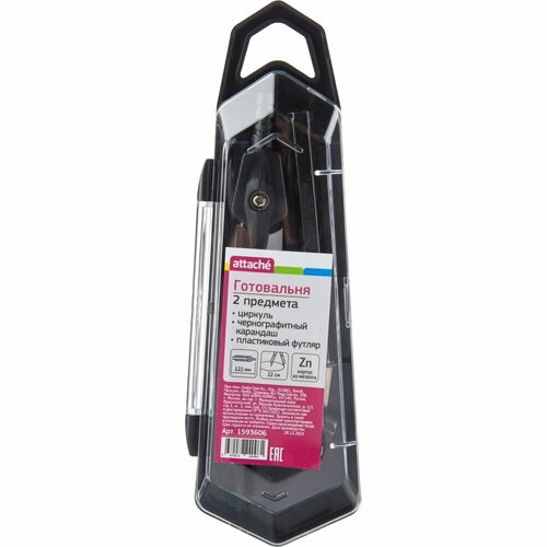 Готовальня Attache 2 предмета, циркуль 122 мм, черно-серебристая, пластиковый пенал, европодвес (BF-BX4)
