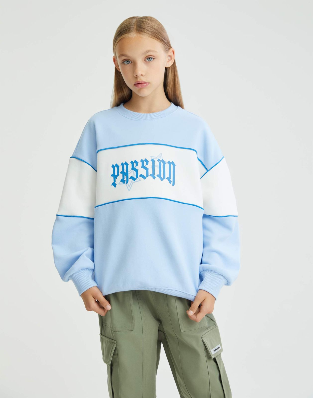 Свитшот для девочки Gloria Jeans GAC023101 голубой/молочный 8-10л/140 Вьетнам
