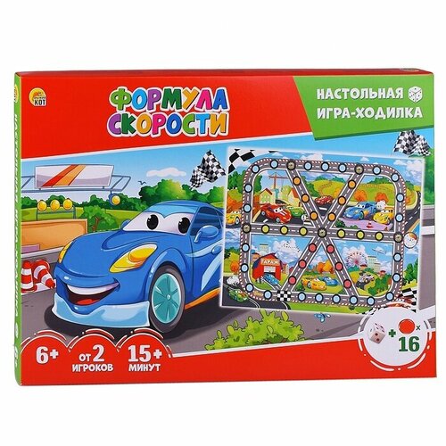 Игра-ходилка Рыжий кот с плоскими фишками "Формула скорости" в коробке (ИНЗ-3078)