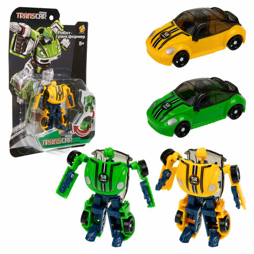 1toy Transcar mini робот-трансформер, 8 см, блистер (в асс. 2 вида, желтый и зеленый)