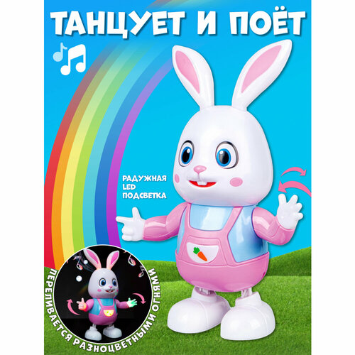 Интерактивная игрушка-робот Зайчик 26,5 см танцует и поет, светятся живот, ручки и ушки, на батарейках, в подарок для девочки, мальчика, Т2024