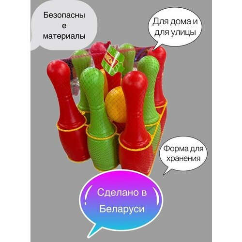Спортивный игровой набор Полесье "Кегли", 9 штук (6447), зеленый/ синий/ красный