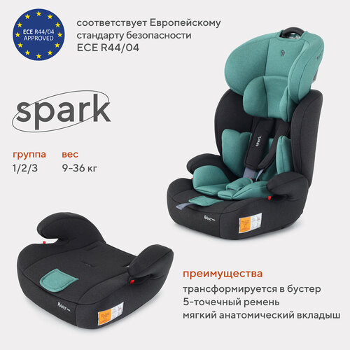 Автокресло детское Rant basic Spark арт. ZY10, группа 1/2/3 от 9 мес. до 12 лет вес 9-36 кг рост 80-145 см, Mint