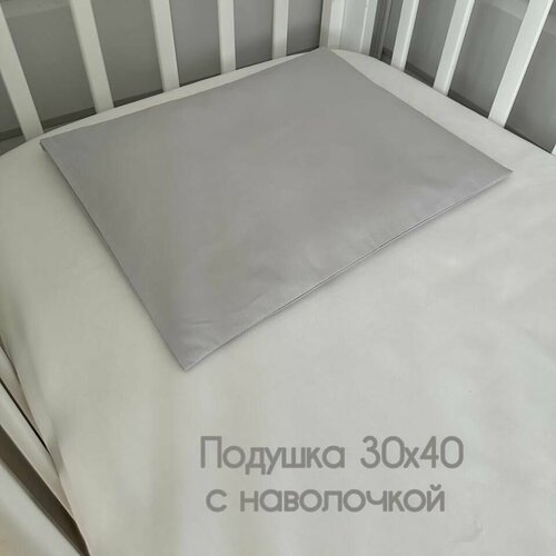 Подушка с наволочкой для новорожденного MamiBro, размер 30х40 см, темно серый