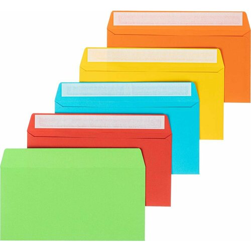 Конверт 5 цветов C65 стрип 114х229 120г комус 10шт/уп