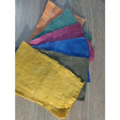 Вата льняная, цветная, окрашенная для изготовления ватных игрушек, 100% лен, размер 19см*11см, набор - 6 цветов
