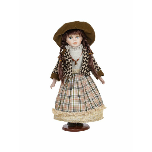 Кукла коллекционная керамика "Василиса в белом платье с деталями в клетку" 30 см