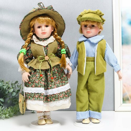 Кукла коллекционная парочка "Вика и Антон, розочки на зелёном" набор 2 шт 40 см