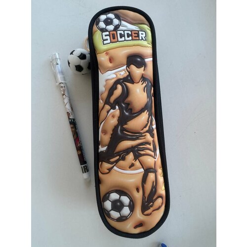 Школьный пенал с принтом 3D-футболист с брелком + подарок ручка