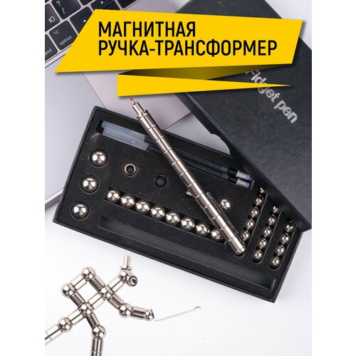 Антистресс магнитная гелевая ручка , конструктор с магнитами подарочная серебряная