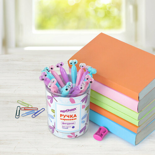 Упаковка 12 шт. Ручка фигурная шариковая юнландия "Стрекоза", корпус ассорти, синяя, пишущий узел 0,7 мм, 143789