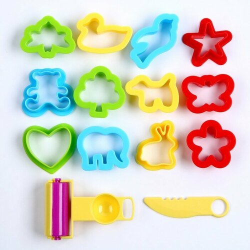 Формочки для лепки, набор 12 шт, валик, инструмент, цвет микс